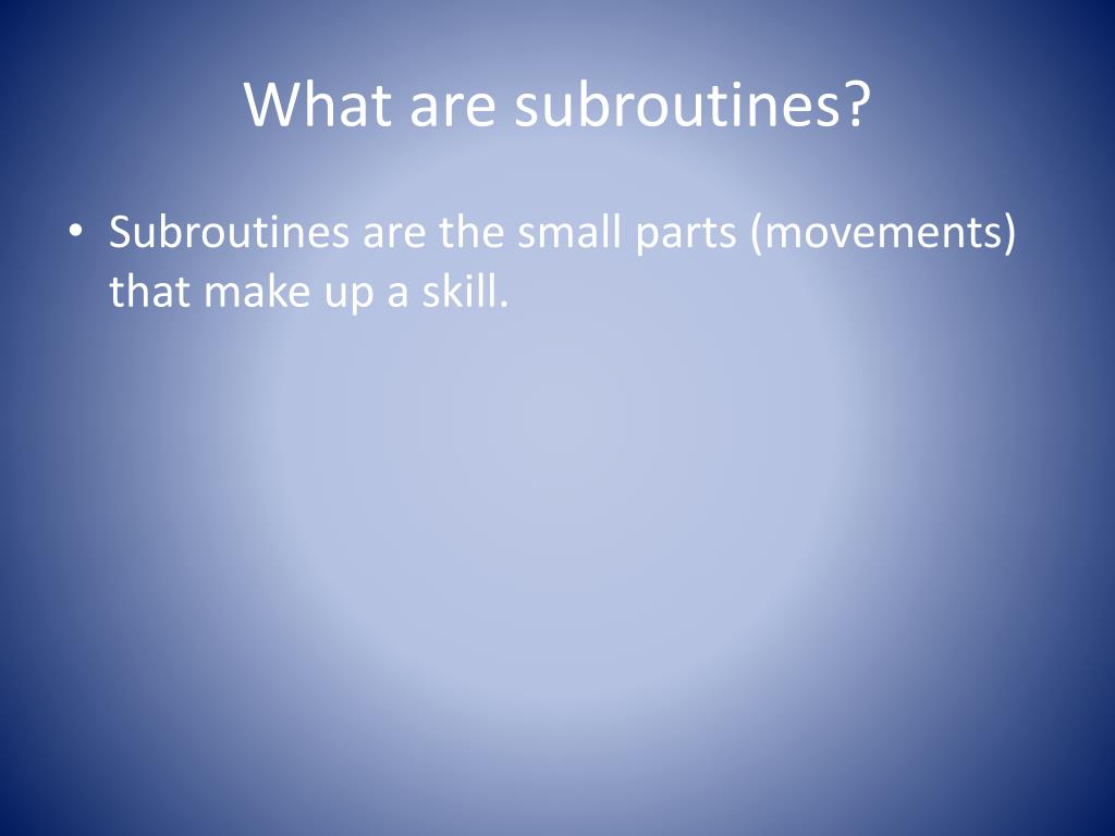 What are subroutines? • Subroutines are the small parts (movements) that make up a skill.