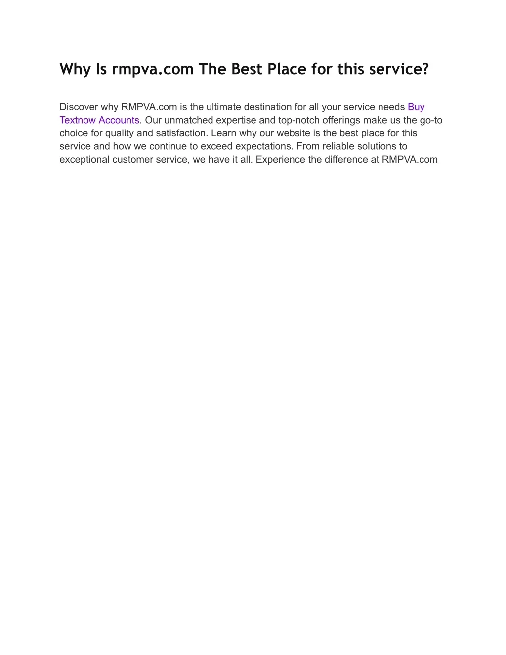 Why Is rmpva.com The Best Place for this service? Discover why RMPVA.com is the ultimate destination for all your service needs Buy Textnow Accounts. Our unmatched expertise and top-notch offerings make us the go-to choice for quality and satisfaction. Learn why our website is the best place for this service and how we continue to exceed expectations. From reliable solutions to exceptional customer service, we have it all. Experience the difference at RMPVA.com