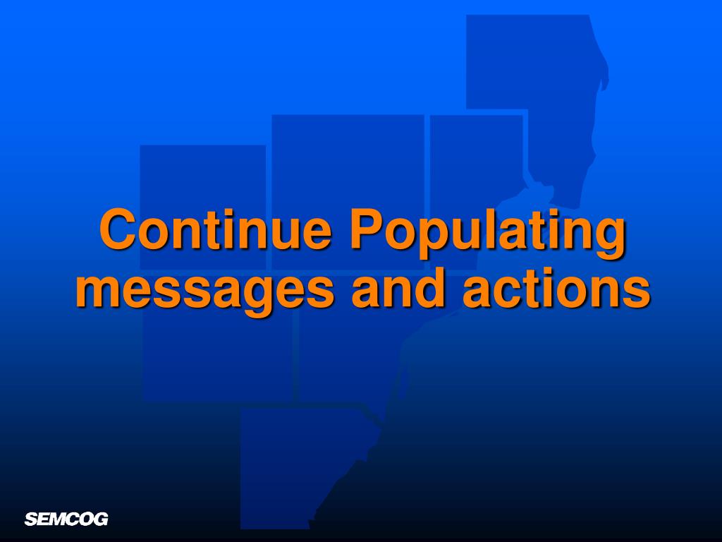 Examples of roles and mechanisms • Moving from messages to actions in SEMCOG’s regional plans and policies • Same for consortium members within their institutional framework