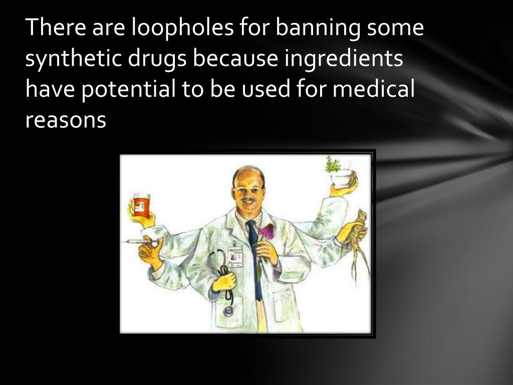 There are loopholes for banning some synthetic drugs because ingredients have potential to be used for medical reasons
