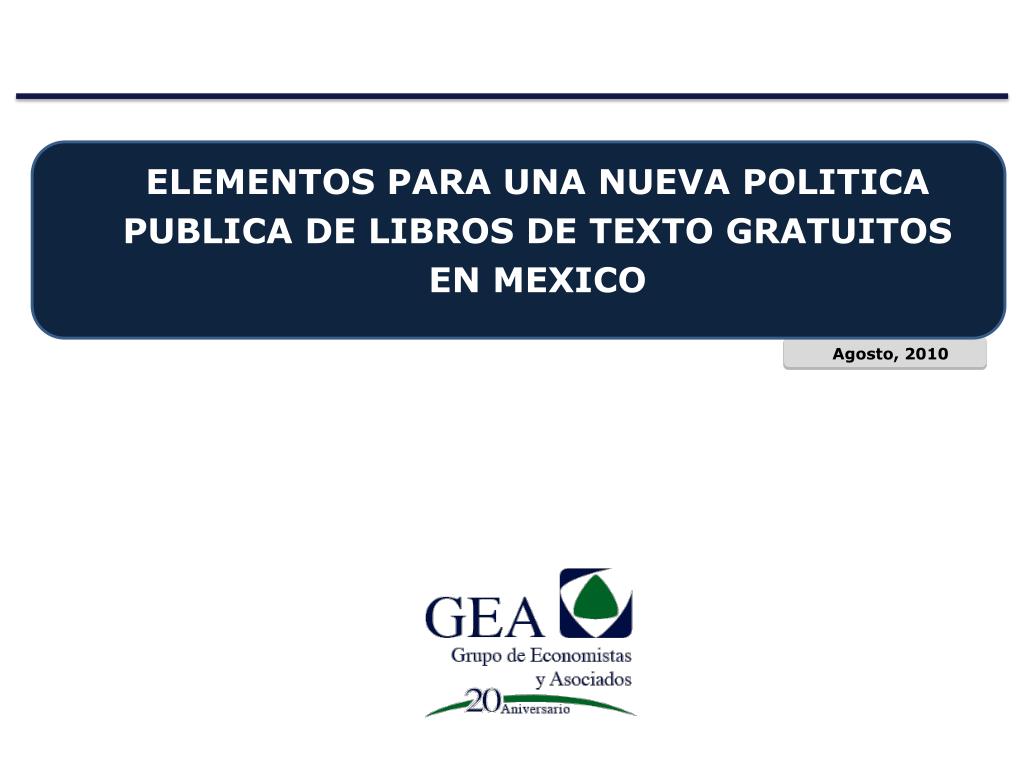 ELEMENTOS PARA UNA NUEVA POLITICA PUBLICA DE LIBROS DE TEXTO GRATUITOS EN MEXICO Agosto, 2010
