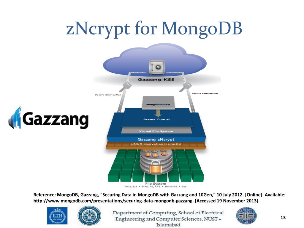 zNcrypt for MongoDB Reference: MongoDB, Gazzang, "Securing Data in MongoDB with Gazzang and 10Gen," 10 July 2012. [Online]. Available: http://www.mongodb.com/presentations/securing-data-mongodb-gazzang. [Accessed 19 November 2013].