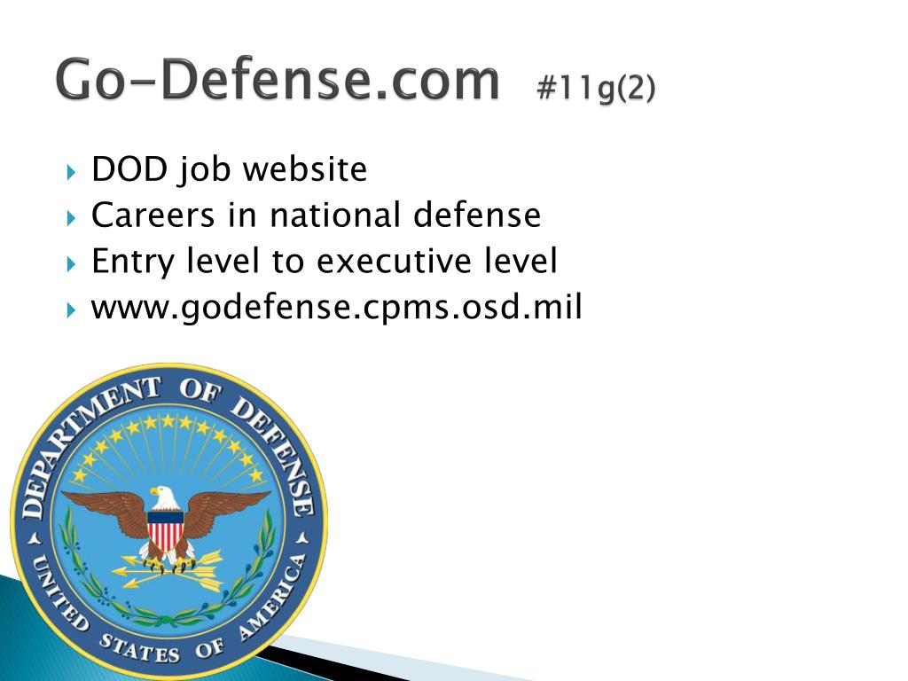 Go-Defense.com #11g(2) • DOD job website • Careers in national defense • Entry level to executive level • www.godefense.cpms.osd.mil