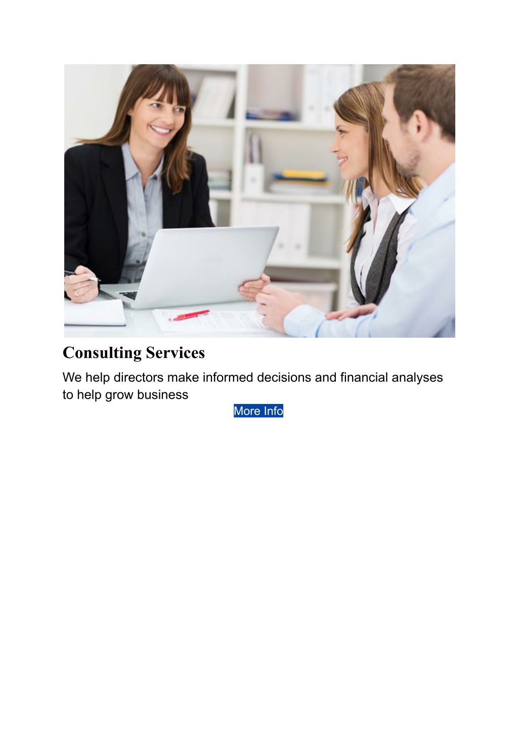 Consulting Services We help directors make informed decisions and financial analyses to help grow business More Info