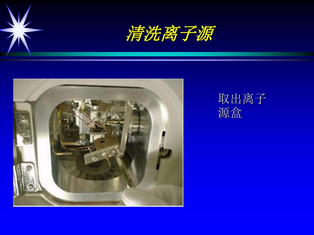 清洗离子源 用专用清洁布擦洗离子源盒和排斥极