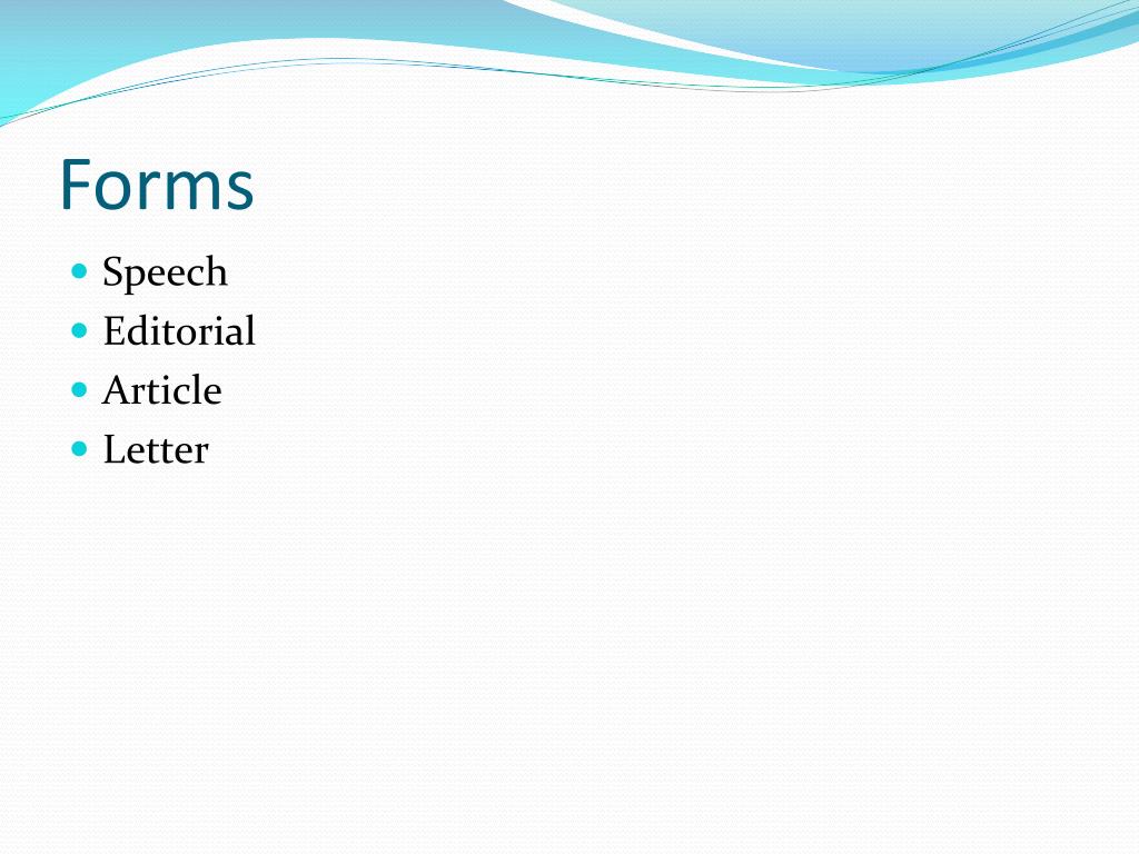 Forms • Speech • Editorial • Article • Letter