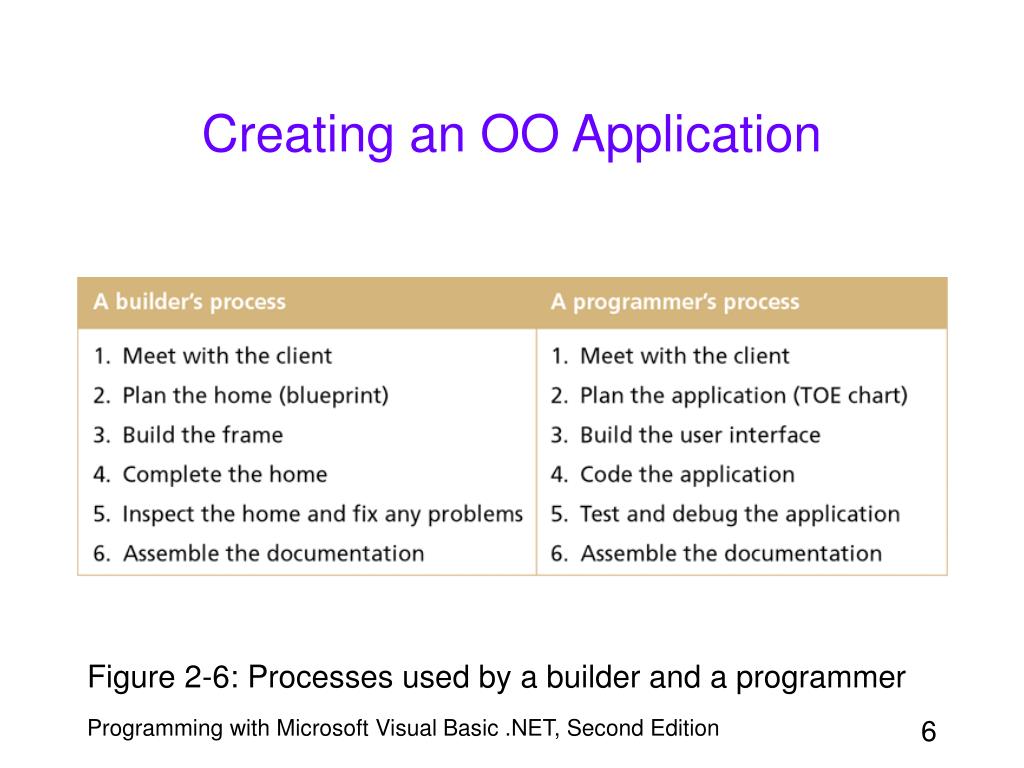 Creating an OO Application Figure 2-6: Processes used by a builder and a programmer Programming with Microsoft Visual Basic .NET, Second Edition