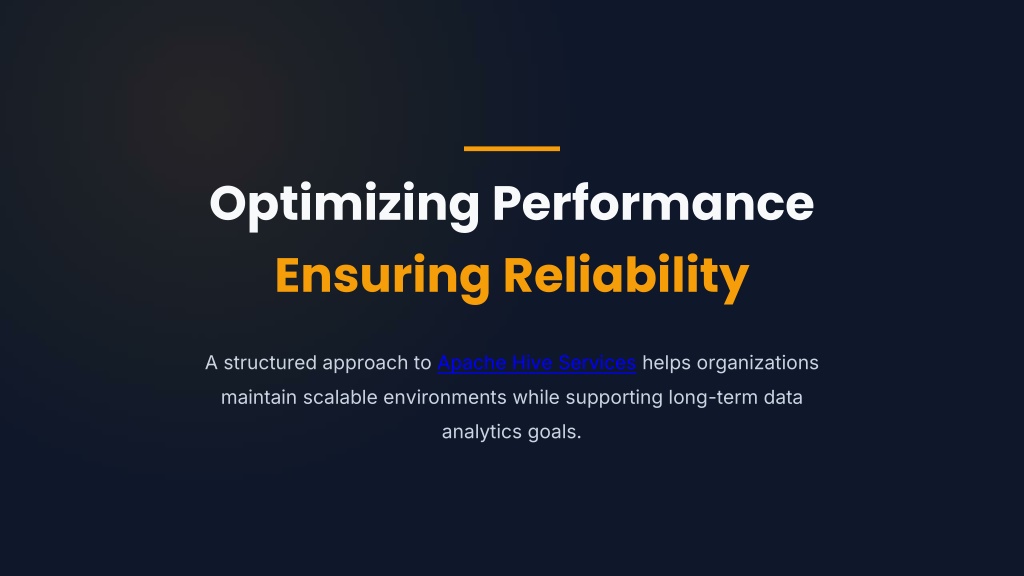 11. Optimizing Performance Ensuring Reliability A structured approach to Apache Hive Services helps organizations maintain scalable environments while supporting long-term data analytics goals.