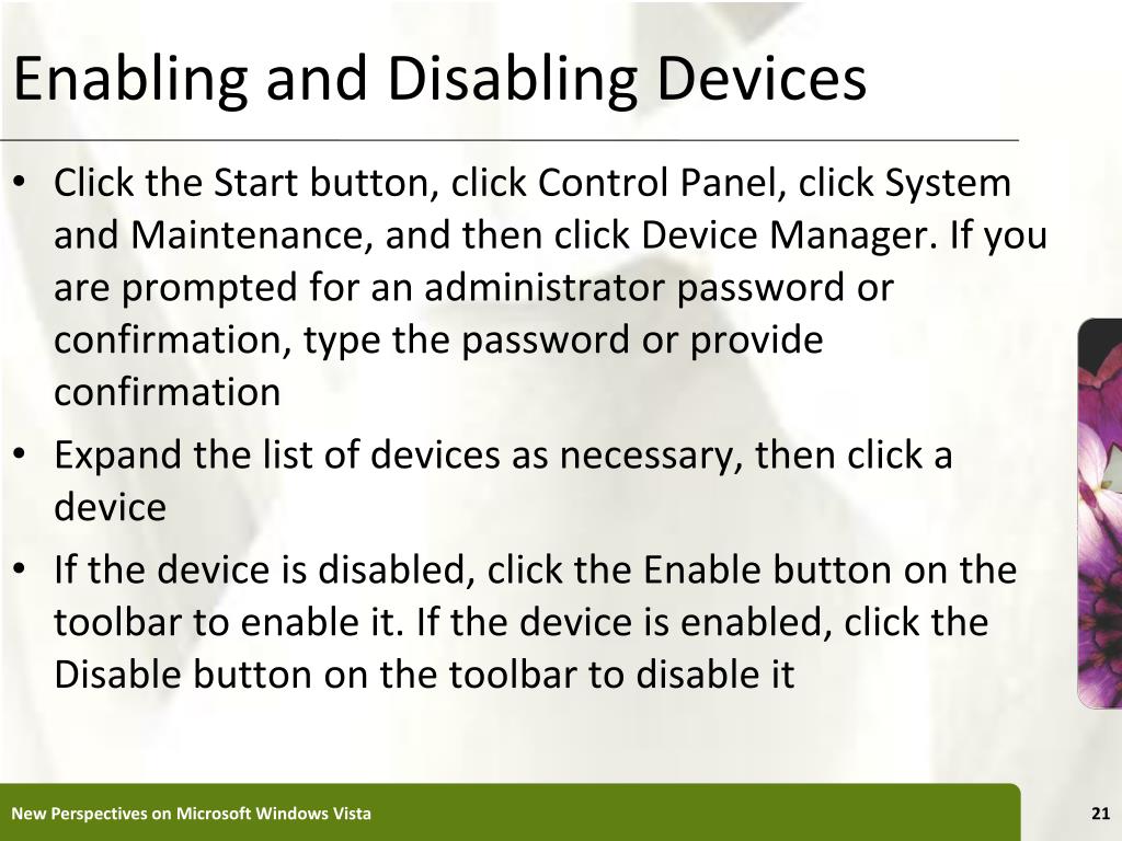Enabling and Disabling Devices New Perspectives on Microsoft Windows Vista