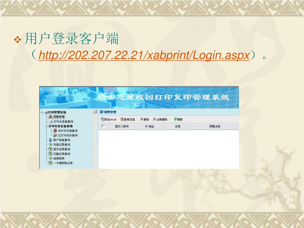 用户登录客户端(http://202.207.22.21/xabprint/Login.aspx)。用户登录客户端(http://202.207.22.21/xabprint/Login.aspx)。
