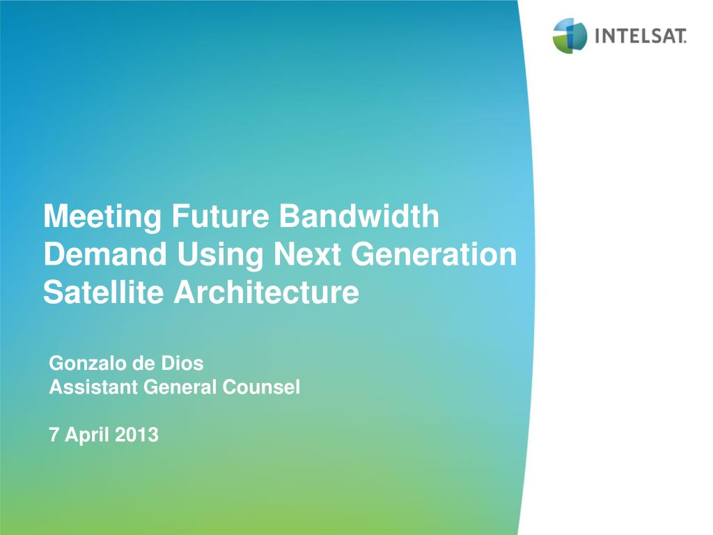 Meeting Future Bandwidth Demand Using Next Generation Satellite Architecture. Gonzalo de Dios Assistant General Counsel 7 April 2013. Demand for Bandwidth Is Growing at a Significant Rate Across Applications Served by Satellites. Leverages existing infrastructure