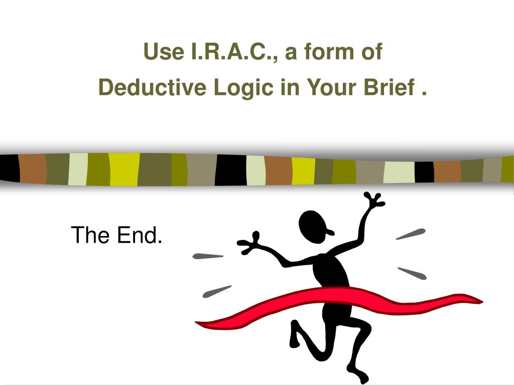 Use I.R.A.C., a form of Deductive Logic in Your Brief . The End.