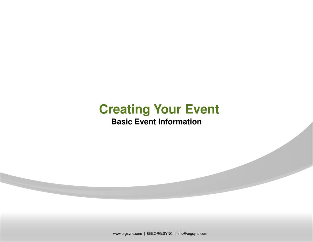 Basic Event Information • Single vs. Multi vs. Repeating • Date • Time • Repeat/Reoccurring Creating Your Event