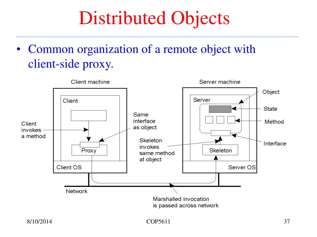 Distributed Objects • Common organization of a remote object with client-side proxy. COP5611
