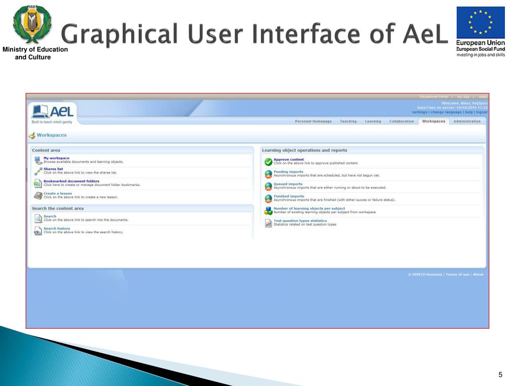 AeL (Advanced eLearning) • AeL (Advanced eLearning) is a high-end Learning Management System, created by the Romanian company Siveco. • It combines a web-based user friendly interface with advanced functionality.