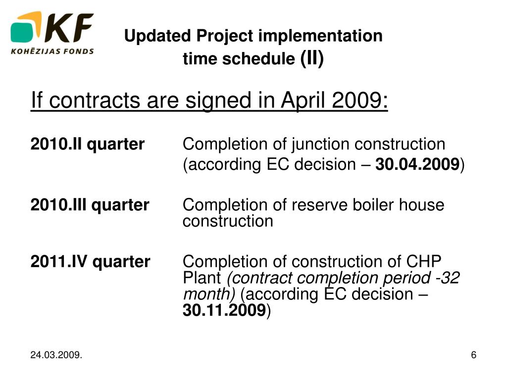 Updated Project implementationtime schedule (I) March 2009 2nd stage of increasing the share capital executed 2009. II quarter credit negotiations 2009. II quarter planed to sign the contracts (after confirmation that credit will be granted)