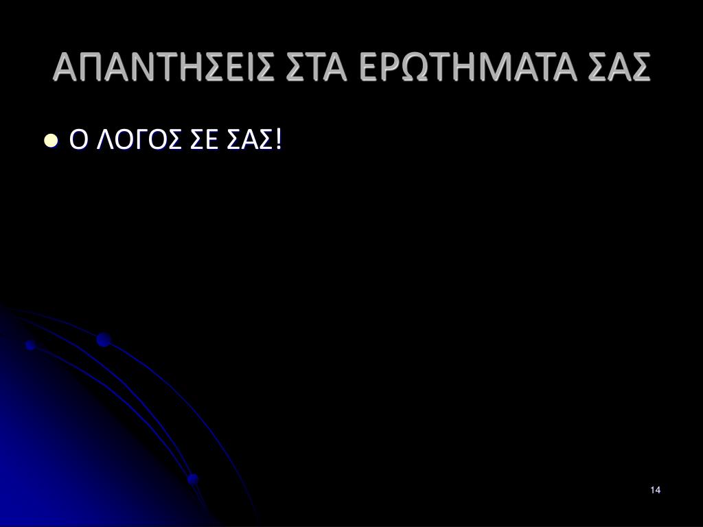 ΑΠΑΝΤΗΣΕΙΣ ΣΤΑ ΕΡΩΤΗΜΑΤΑ ΣΑΣ • Ο ΛΟΓΟΣ ΣΕ ΣΑΣ!