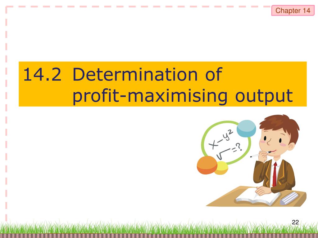 Chapter 14 Profit maximisationand output determination To begin with … 14.1 Objectives of private enterprises 14.2 Determination of profit-maximising output 14.3 Marginal cost schedule = Supply schedule