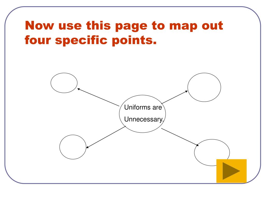 Now use this page to map out four specific points. Uniforms are Unnecessary.