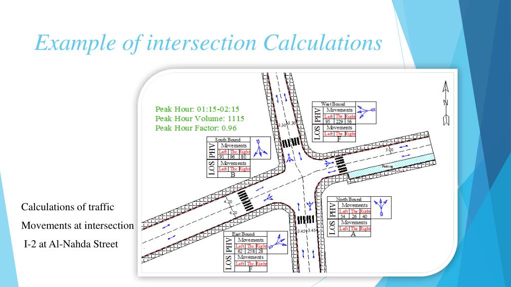 Example of intersection Calculations Calculations of traffic Movements at intersection I-2 at Al-Nahda Street