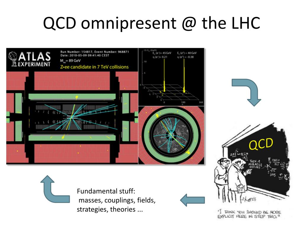 QCD omnipresent @ the LHC QCD Fundamental stuff: masses, couplings, fields, strategies, theories ...