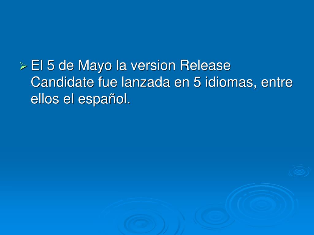 El 5 de Mayo la version Release Candidate fue lanzada en 5 idiomas, entre ellos el español.
