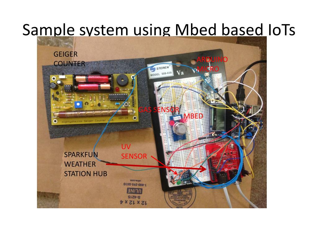 Sample system using Mbed based IoTs GEIGER COUNTER ARDUINO MICRO GAS SENSOR MBED UV SENSOR SPARKFUN WEATHER STATION HUB