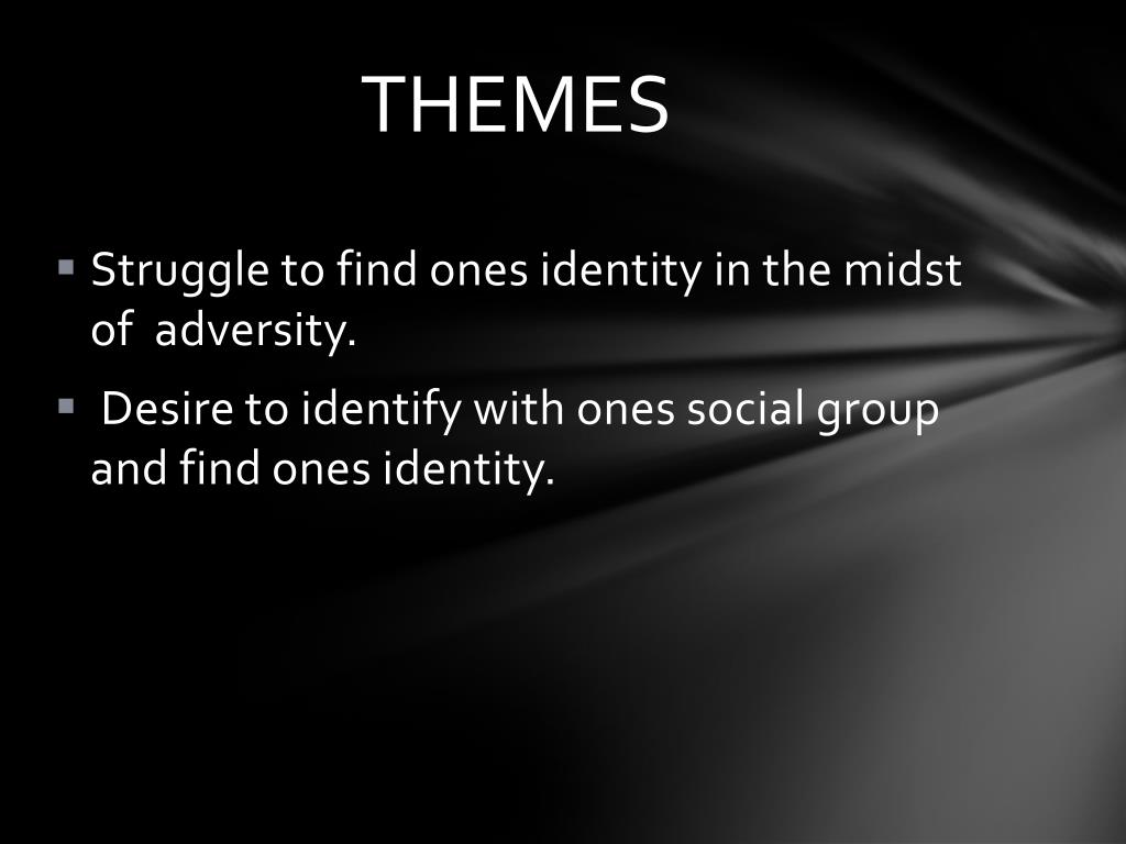 THEMES • Struggle to find ones identity in the midst of adversity. • Desire to identify with ones social group and find ones identity.