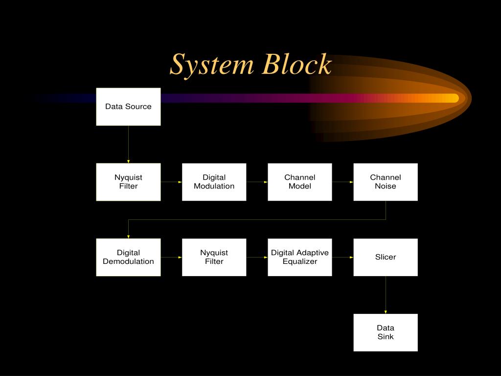 LMS Adaptive Equation C(k): equalizer coefficient vector; k : time count at symbol rate; : adaptive control parameter; E(k): error output from slicer; X(k): equalizer input (I data and Q data); C(k+1)=C(k)- E(k)•X(k)