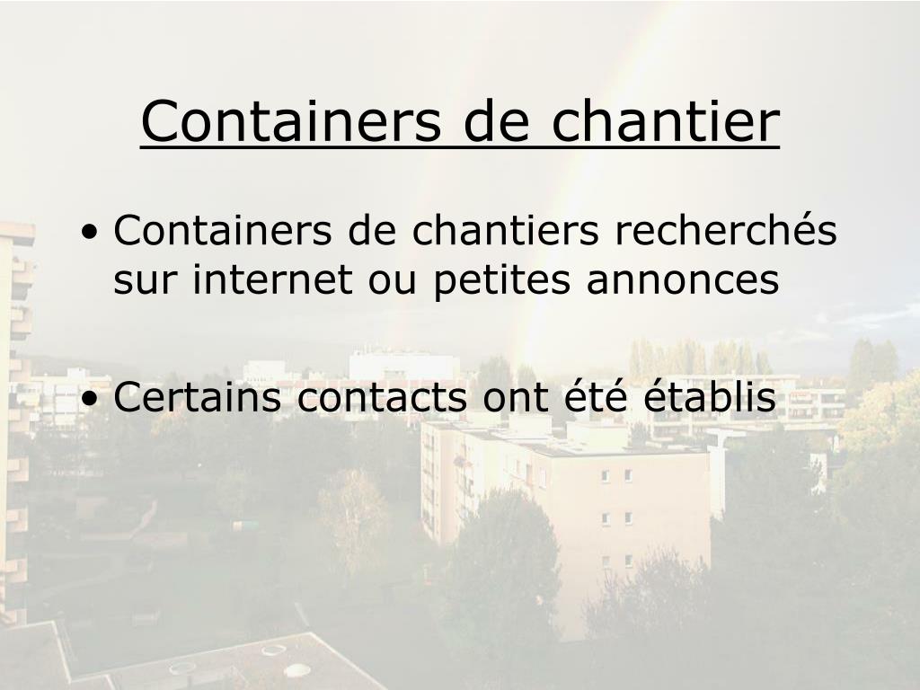 Containers de chantier • Containers de chantiers recherchés sur internet ou petites annonces • Certains contacts ont été établis