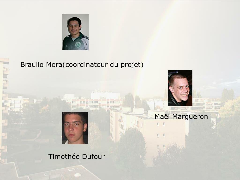 Braulio Mora(coordinateur du projet) Maël Margueron Timothée Dufour