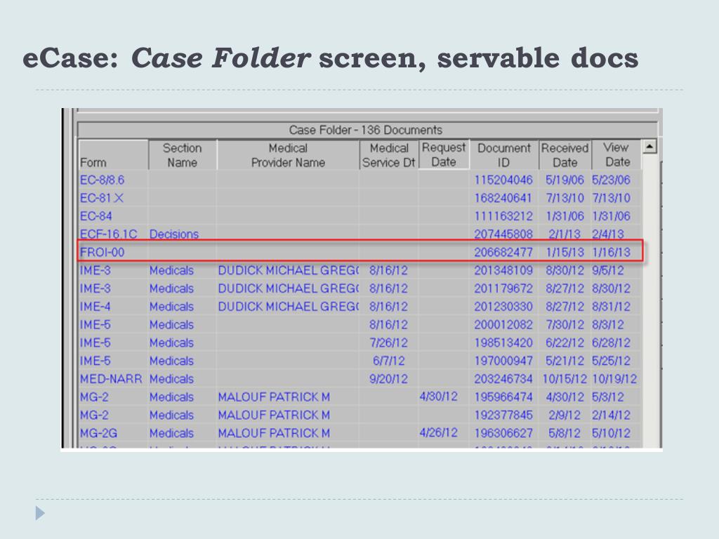 Servable Documents • See Subject Number 046-522, issued April 16, 2013 • EDI equivalents of todays C-669 and C-7, and notice of cease or modify payments • Electronic filing and service timing under reg • Documents as PDFs in CIS and eCase • Evidentiary value