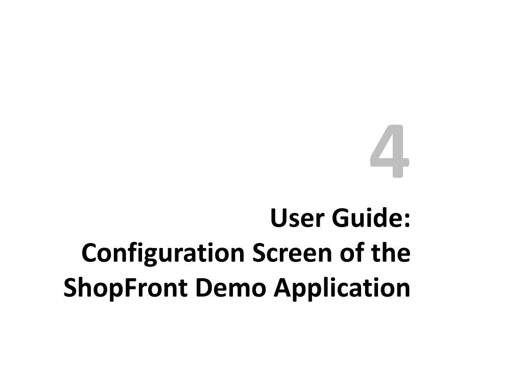 4User Guide: Configuration Screen of the ShopFront Demo Application