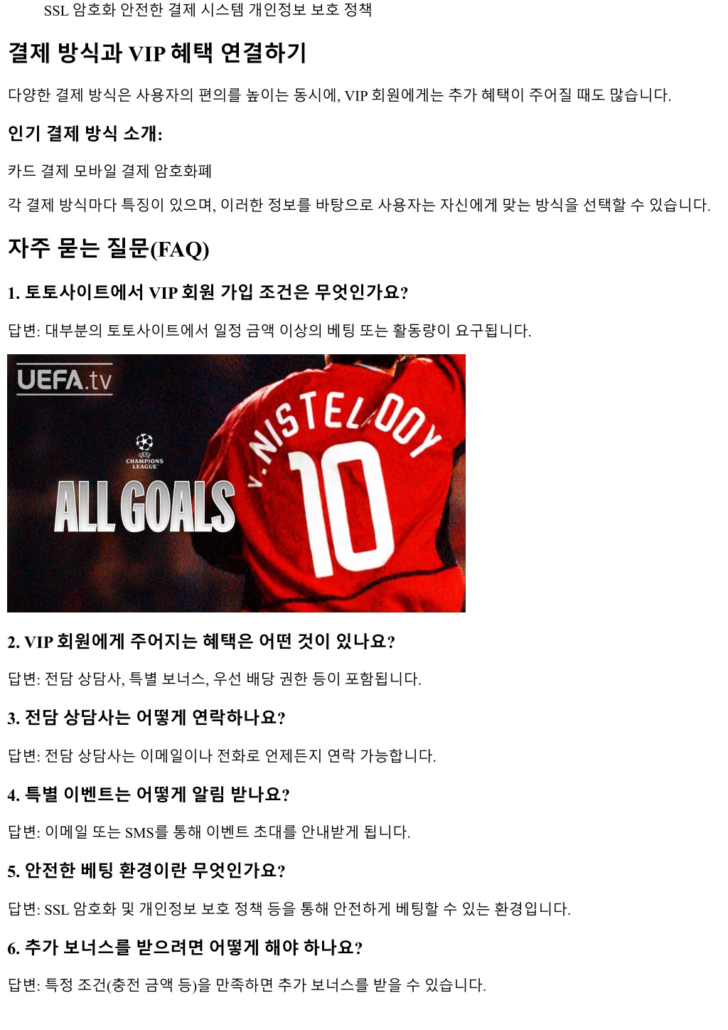 위내용처럼다양한정보와구조를갖춘 ‘VIP 고객을위한특별서비스제공하는토토사이트’에대해알아보았 습니다! 이러한내용을바탕으로더나아가모든사용자가만족할수있는최상의경험을만들기를기대합니다!