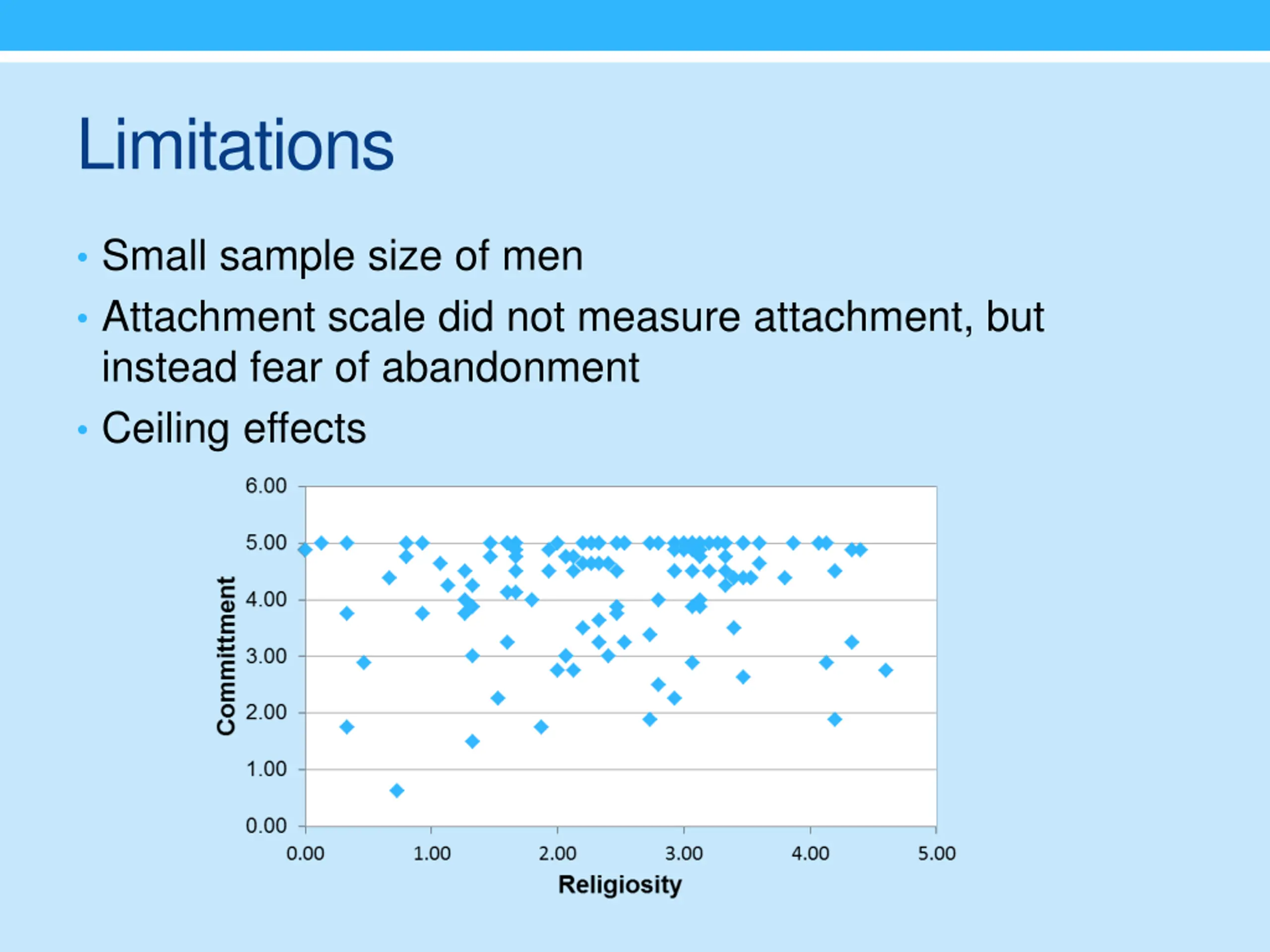 Limitations • Small sample size of men • Attachment scale did not measure attachment, but instead fear of abandonment • Ceiling effects