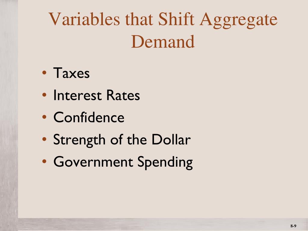 Variables that Shift Aggregate Demand • Taxes • Interest Rates • Confidence • Strength of the Dollar • Government Spending