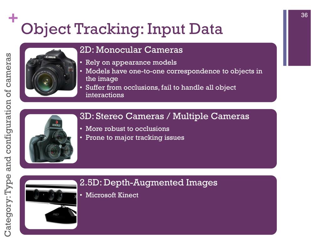 Object Tracking: Input Data Category: Type and configuration of cameras