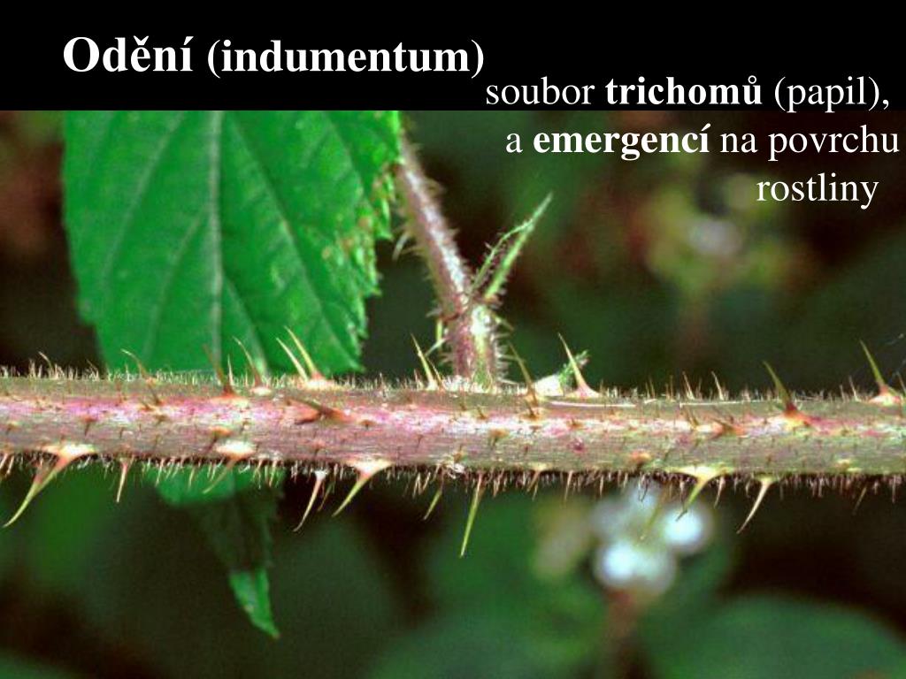 Odění (indumentum) soubor trichomů(papil), a emergencí na povrchu rostliny