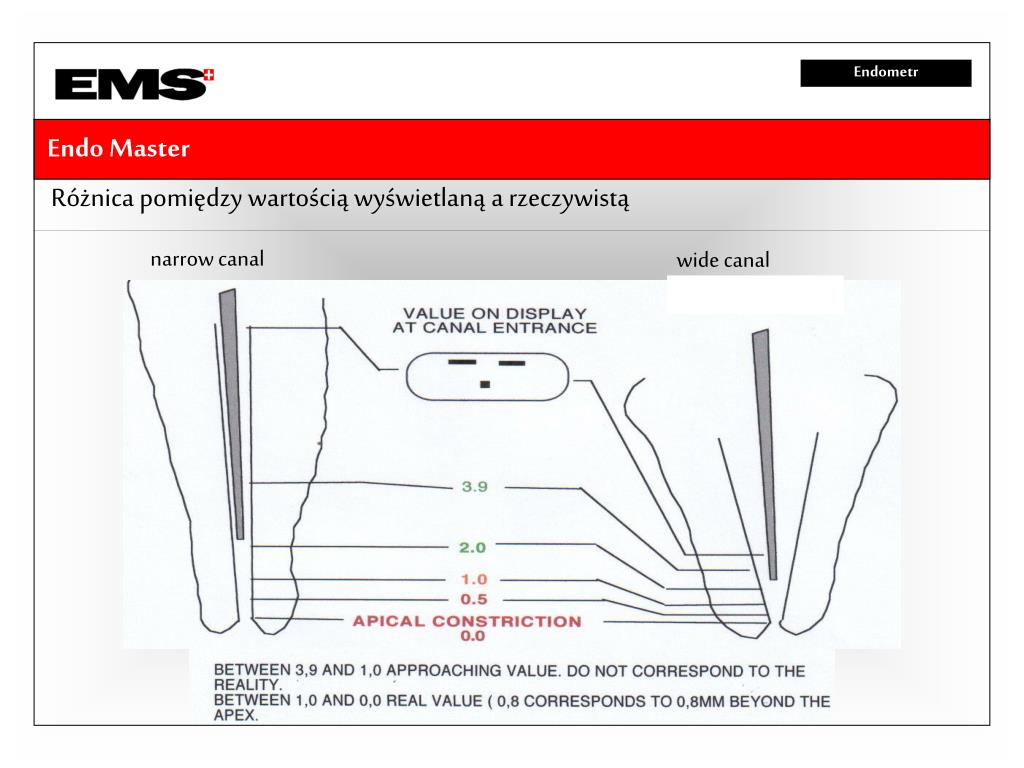 narrow canal wide canal Endometr Endo Master Różnica pomiędzy wartością wyświetlaną a rzeczywistą