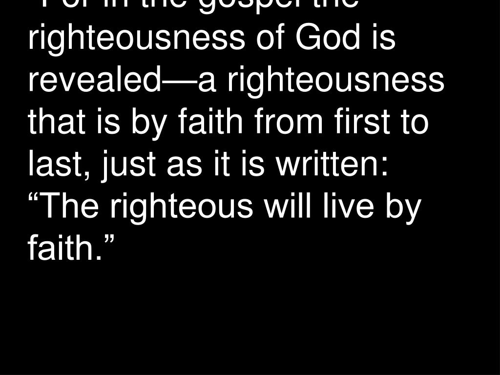 "For in the gospel the righteousness of God is revealed—a righteousness that is by faith from first to last, just as it is written: “The righteous will live by faith.”