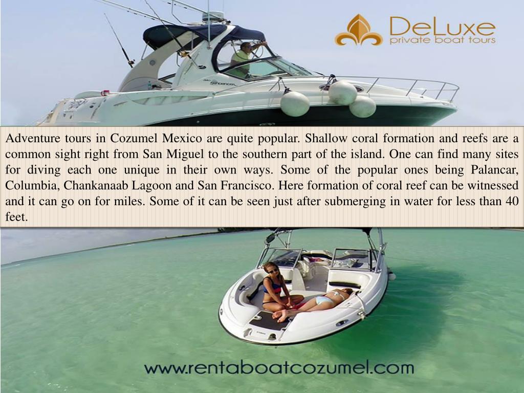 MEETING POINT MERIDIANO 87° CARRETERA COSTERA SUR KM.3 COZUMEL 77600, MEXICO http://www.rentaboatcozumel.com/ https://www.facebook.com/rentaboatcozumel http://www.tripadvisor.com/Attraction_Review-g150809-d4932291-Reviews-Deluxe_Private_Boat_Tours-Cozumel_Yucatan_Peninsula.html