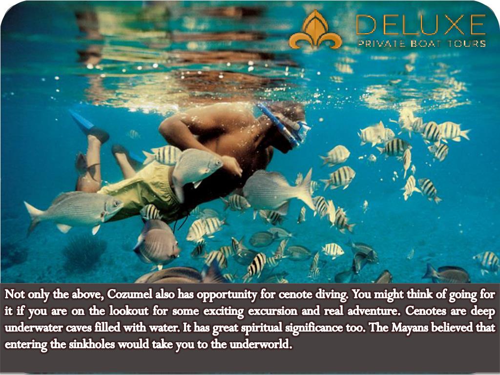 Not only the above, Cozumel also has opportunity for cenote diving. You might think of going for it if you are on the lookout for some exciting excursion and real adventure. Cenotes are deep underwater caves filled with water. It has great spiritual significance too. The Mayans believed that entering the sinkholes would take you to the underworld.