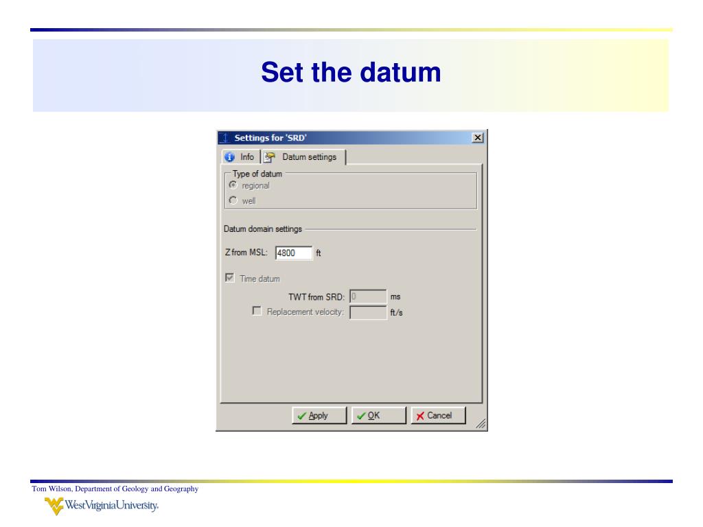 Set the datum Tom Wilson, Department of Geology and Geography