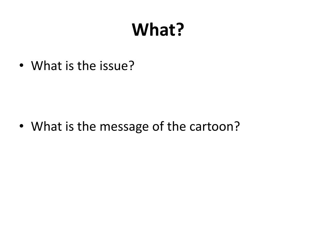 What? • What is the issue? • What is the message of the cartoon?