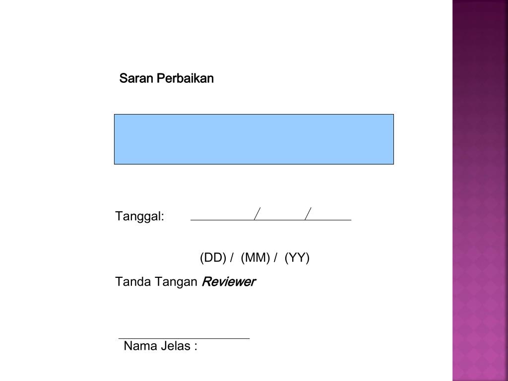 Saran Perbaikan Tanggal: (DD) / (MM) / (YY) Tanda Tangan Reviewer Nama Jelas :