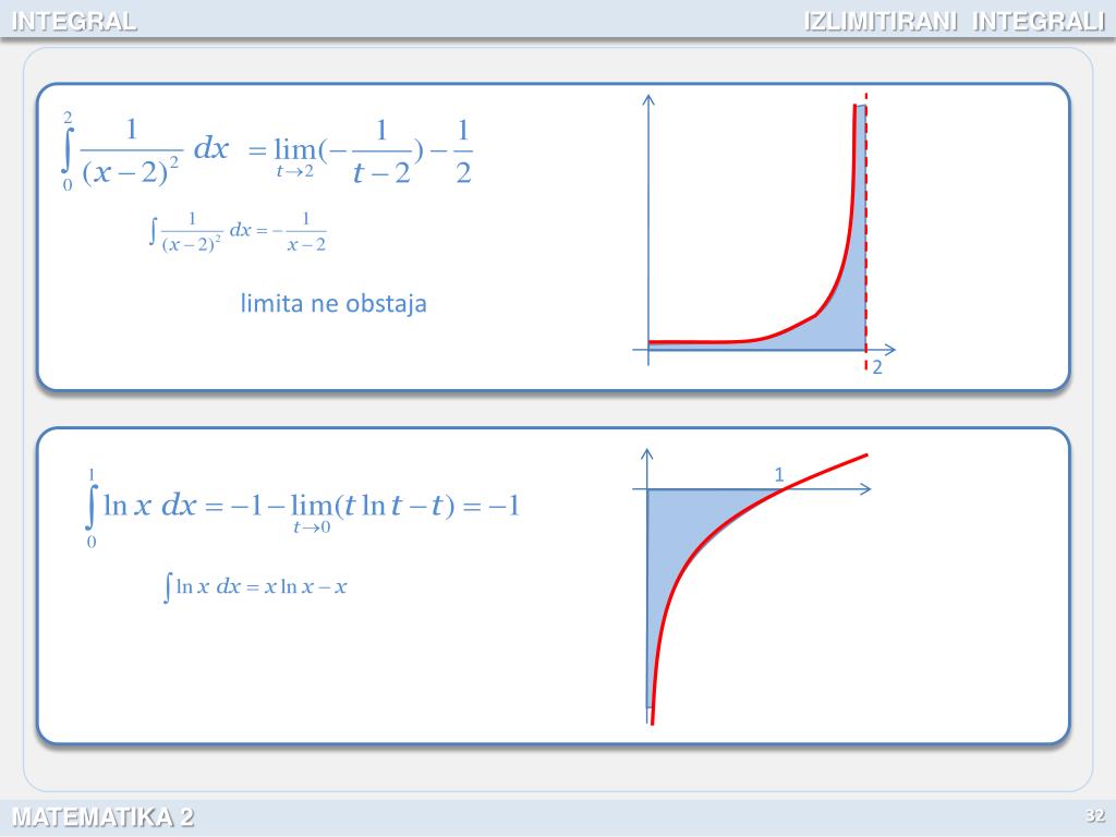 INTEGRAL IZLIMITIRANI INTEGRALI limita ne obstaja 2 1 32 MATEMATIKA 2