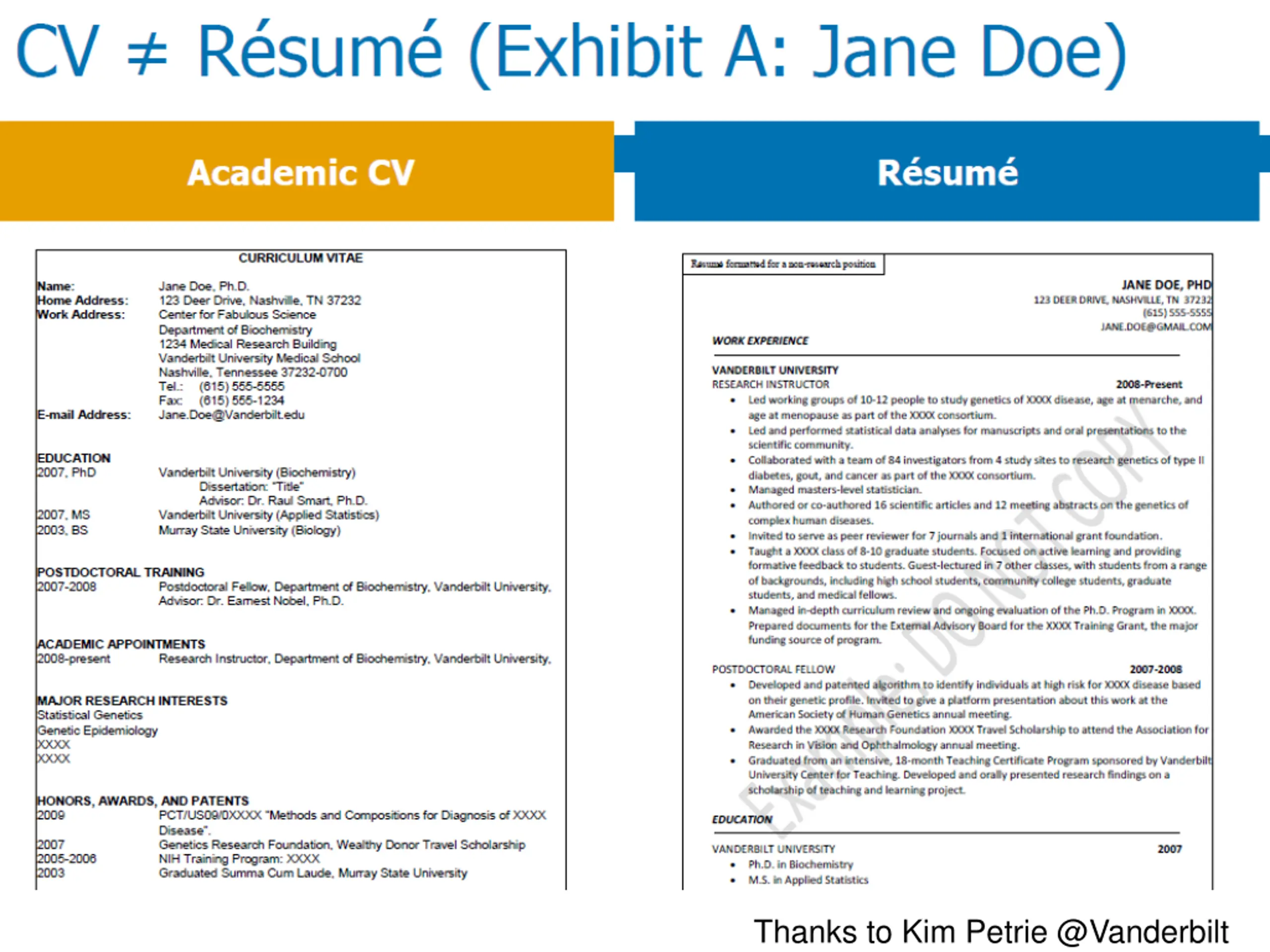 General Thoughts Keep a master activities/accomplishments document as you go along There is no template, but your document must be clean, crisp, and easy to read Real estate matters –put most important things at the front Double and triple-check for typos Lots of eyes are helpful –your faculty,mentors, colleagues But appreciate opinions will vary and data argue that there are many “right ways” Best opinions are from “insiders” with a lot of experience