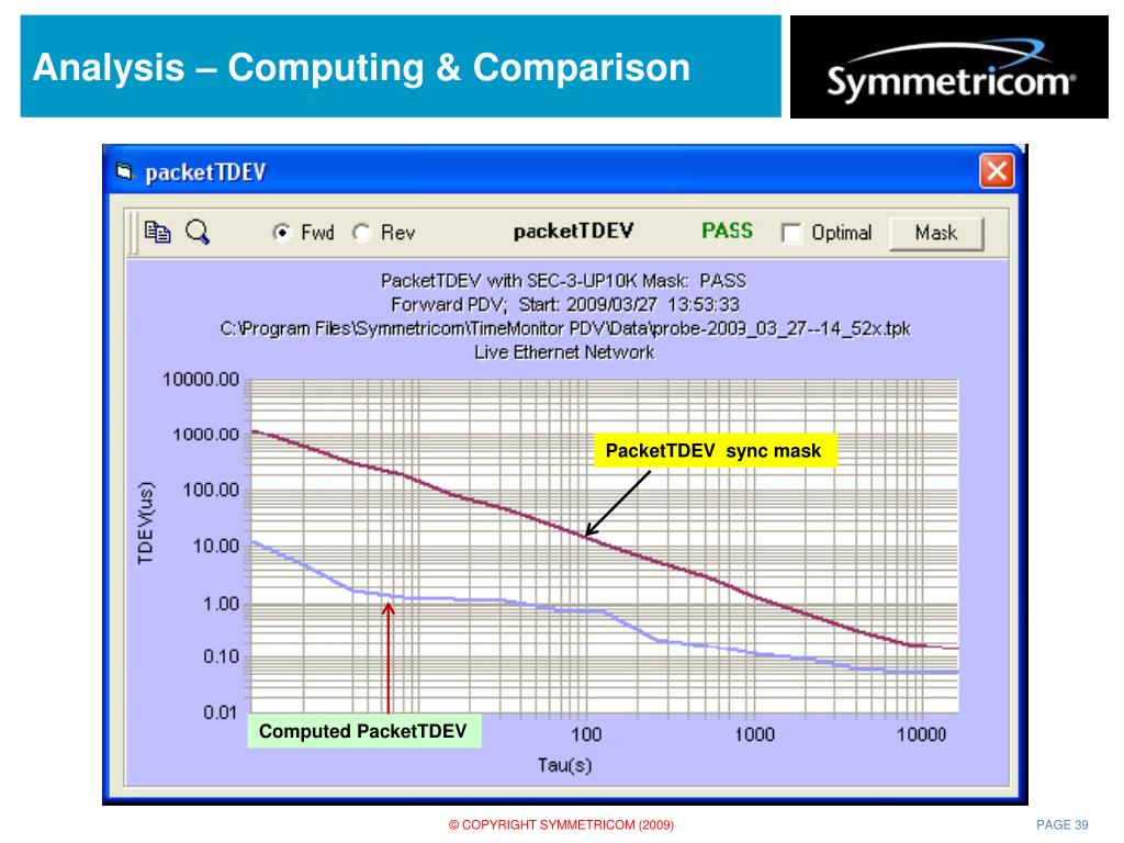 Analysis – Computing & Comparison PacketTDEV sync mask Computed PacketTDEV