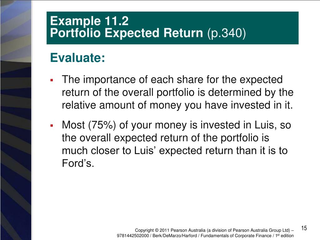 Example 11.2 Portfolio Expected Return (p.340) Execute: 14