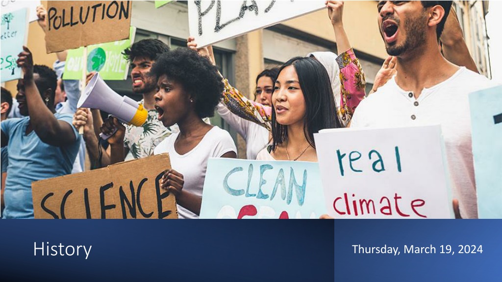 Meeting notes from the History Department's March 19, 2024 meeting, including updates on fraudulent students, modality balance, annual plan, transfer center events, and curriculum counseling. Attendees and various announcements are highlighted.
